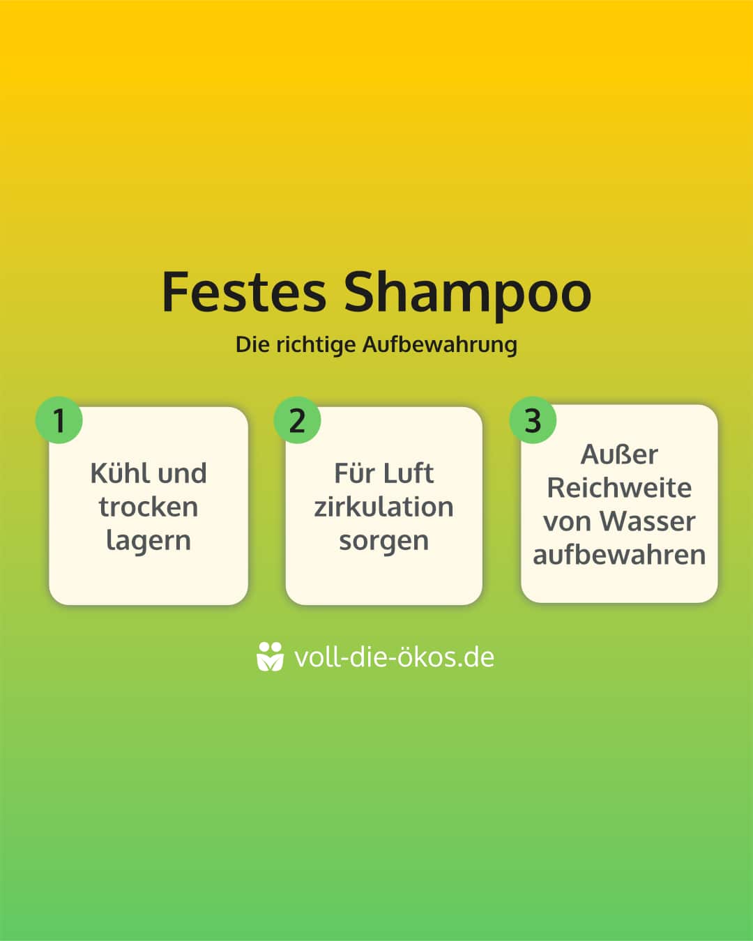 Bei festen Pflegeprodukten ist die richtige Aufbewahrung das A und O. Anders als herkömmliche Shampoos kommt festes Shampoo ohne Plastikverpackung aus, ist aber auch empfindlicher gegenüber Wasser. Wenn es ständig nass bleibt, kann es schnell aufweichen und sich auflösen.